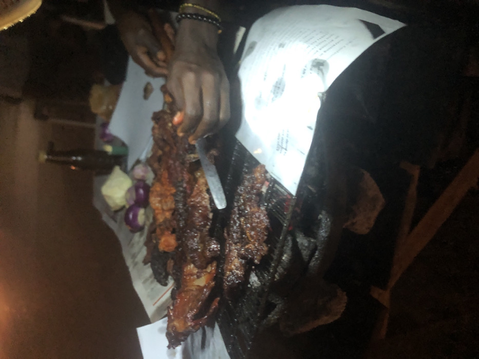 The image depicts a nighttime scene at a street food stall in the city of Masaka, Nigeria