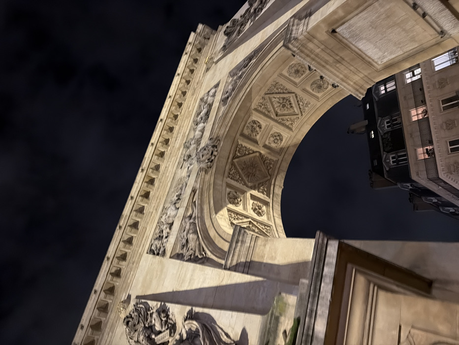- "An upward, angled shot of the Arc de Triomphe at night, showcasing its ornate facade and archway" by FM-ilC4O2, licensed under CC BY 4.0