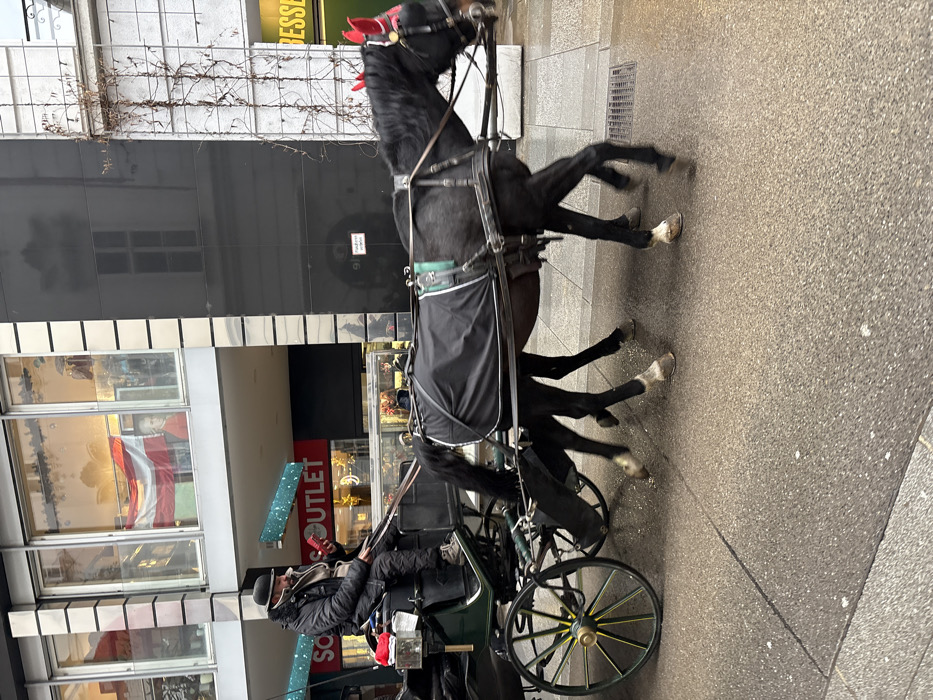 - "A traditional dark green horse-drawn carriage (Fiaker) with yellow-spoked wheels is in motion on a paved street in Vienna, Austria" by FM-2nr0T2, licensed under CC BY 4.0
