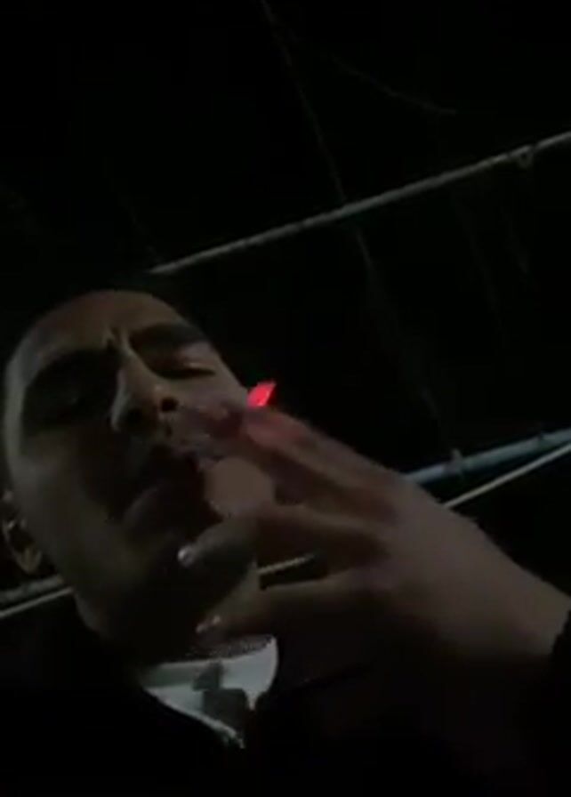 A dimly lit, low-angle shot focuses on a man smoking at night