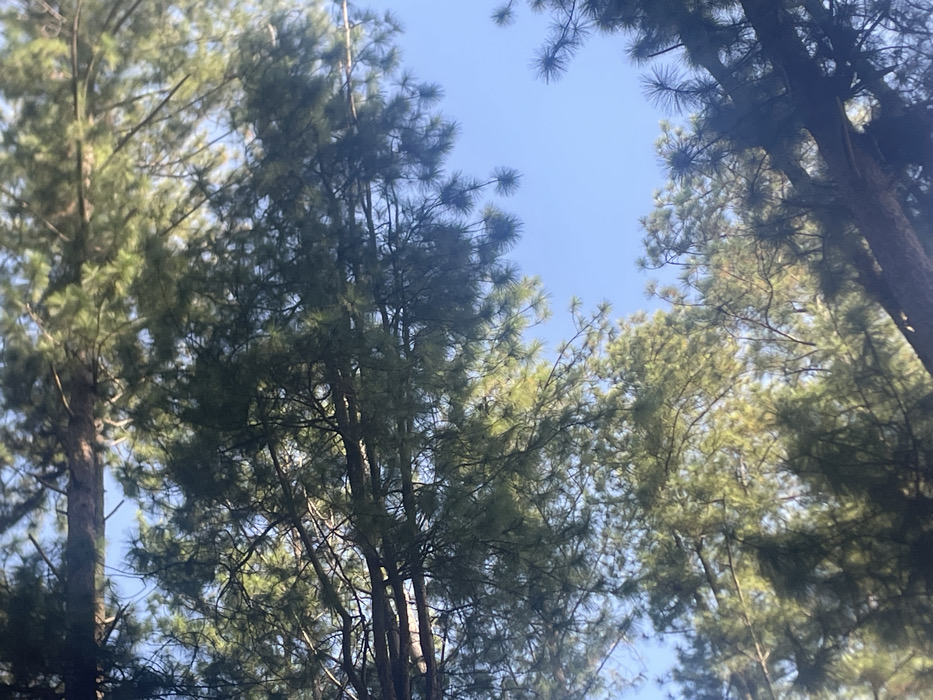 - "The image depicts an upward-looking view into the canopy of several pine trees against a clear, bright blue sky" by FM-G052v2, licensed under CC BY 4.0