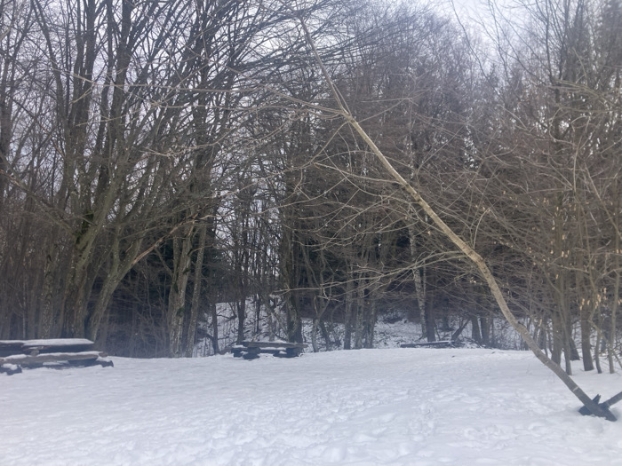 - "The image depicts a snowy outdoor scene at a picnic area situated within a bare deciduous forest in Bistritsa, Bulgaria, under an overcast sky" by FM-6nb8J2, licensed under CC BY 4.0