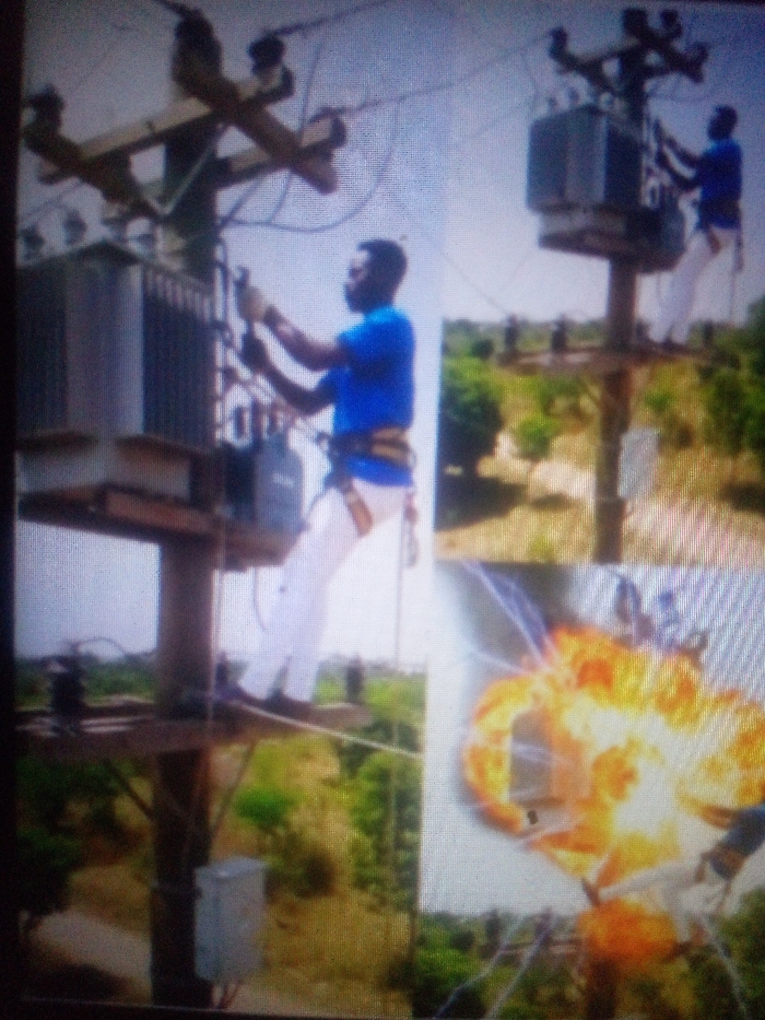 This composite image displays scenes related to electrical infrastructure maintenance in Television, Nigeria