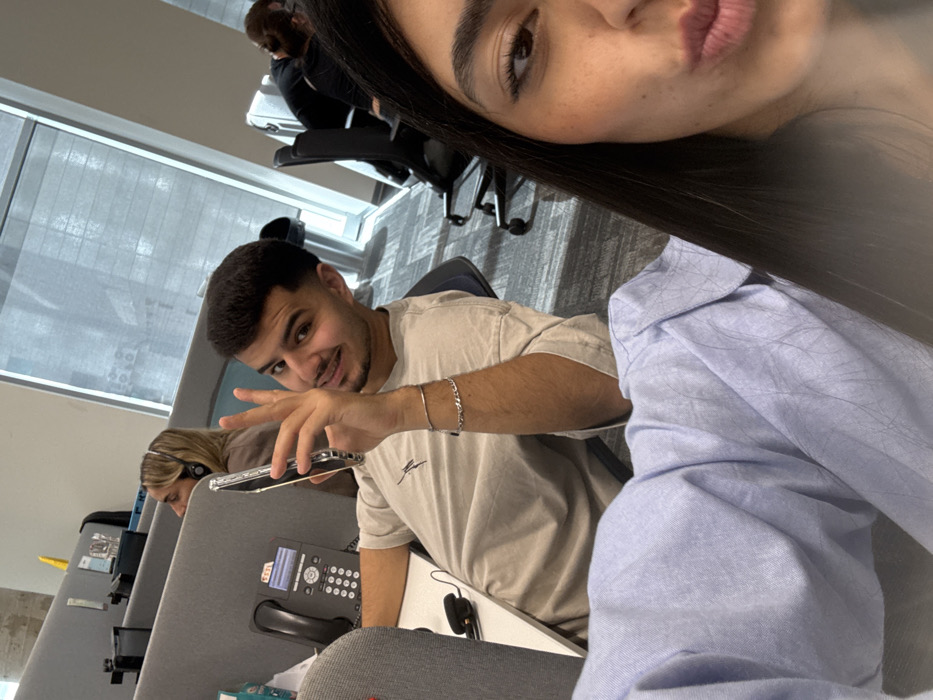 The image depicts an indoor office environment located in Bnei Brak, Israel