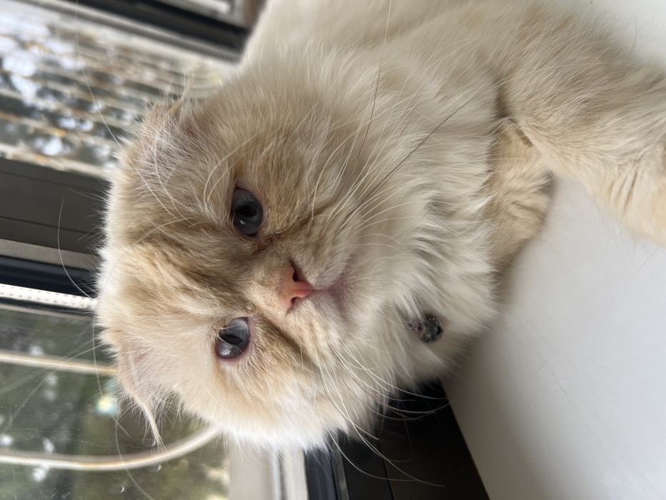 - "A close-up, slightly angled view focuses on a light beige cat with blue eyes" by FM-RkAm93, licensed under CC BY 4.0