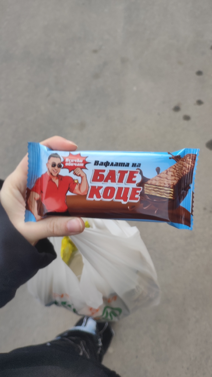 - "A human hand holds a single, horizontally oriented "BATE KOTSE" branded wafer bar in a blue and brown wrapper" by FM-HHgqC2, licensed under CC BY 4.0