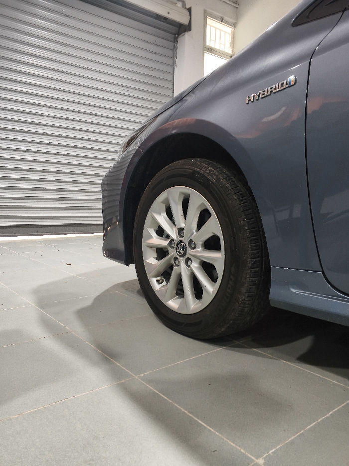 - "The image displays a low-angle view of the front-left section of a metallic blue-grey passenger vehicle, situated in the city of الطبقة فحل, Jordan" by FM-vaLyj1, licensed under CC BY 4.0