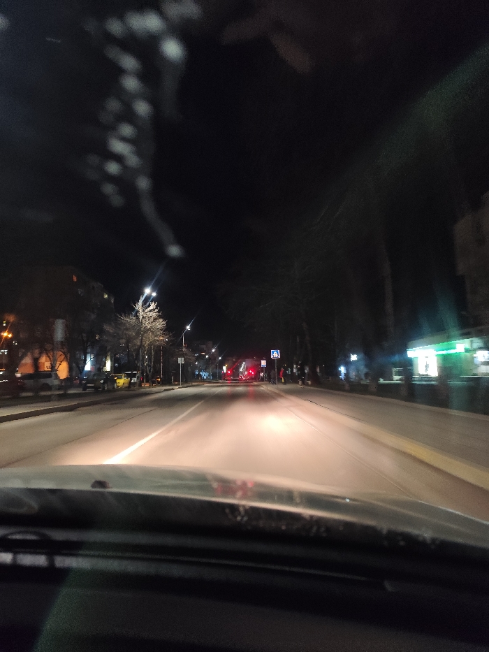 - "The image presents a nighttime urban street scene in Vratsa, Bulgaria, captured from the interior perspective of a vehicle looking forward through the windshield" by FM-GiKA22, licensed under CC BY 4.0