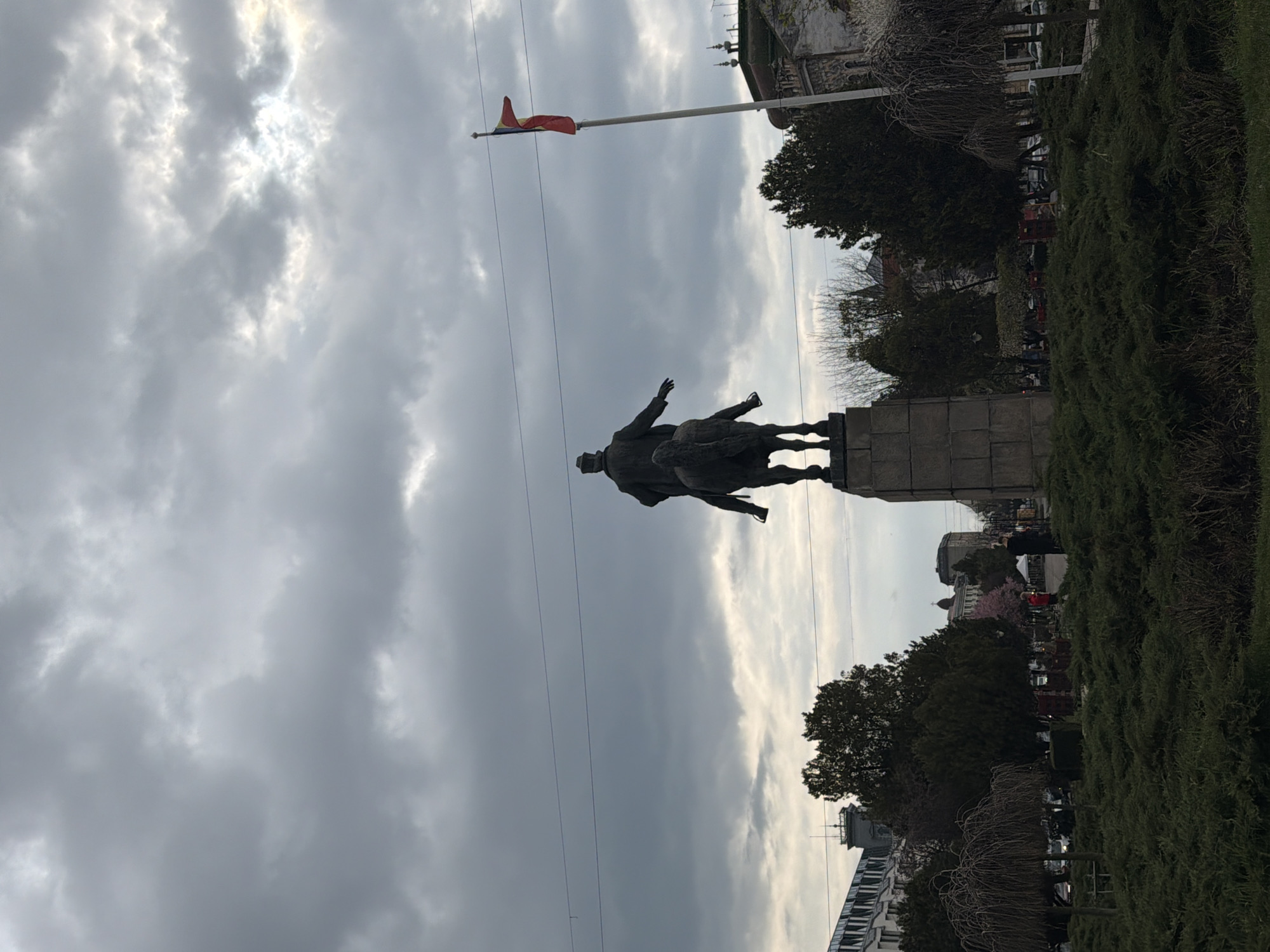 Statue of Avram Iancu, located in Târgu Mureș, Romania, against a cloudy sky