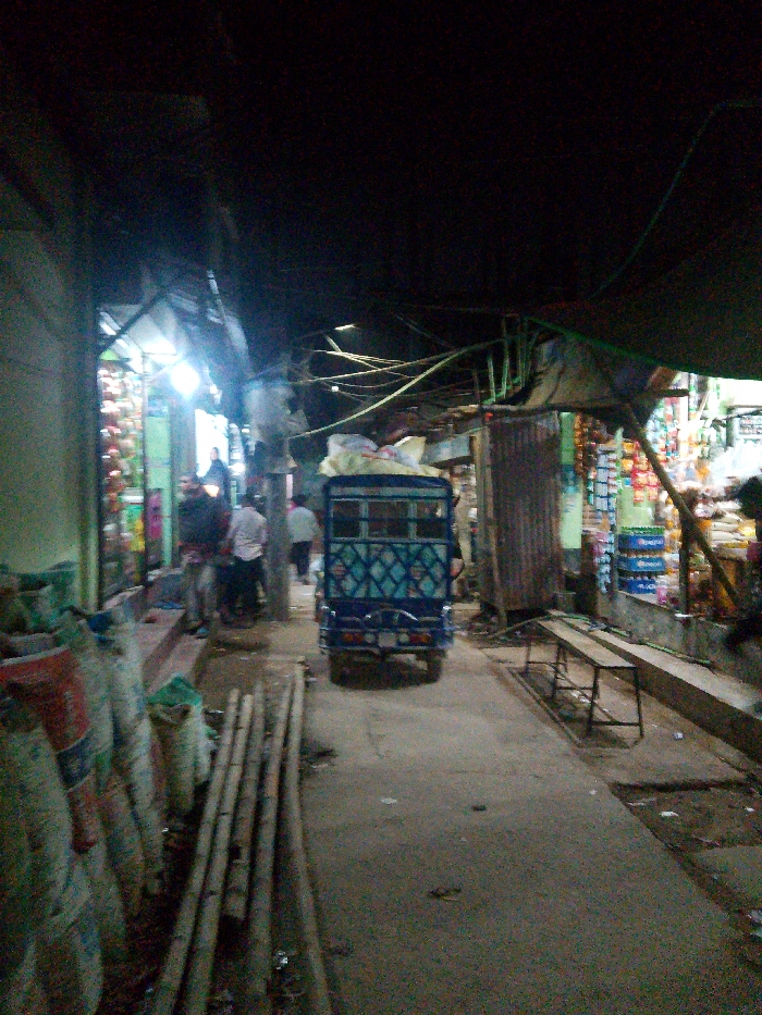 - "The image depicts a narrow, covered street or alleyway within a market area in Tarabo, Bangladesh, observed at an indeterminate time, likely dusk or night, given the reliance on artificial lighting" by FM-lBPkI2, licensed under CC BY 4.0