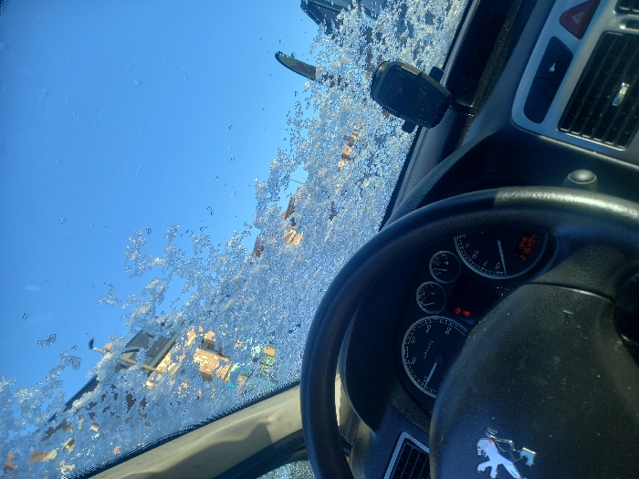 - "The image depicts the interior perspective from a stationary Peugeot vehicle in Noyelles-sous-Lens, France, looking forward through a windshield partially covered with melting ice and frost" by FM-MtLfs2, licensed under CC BY 4.0