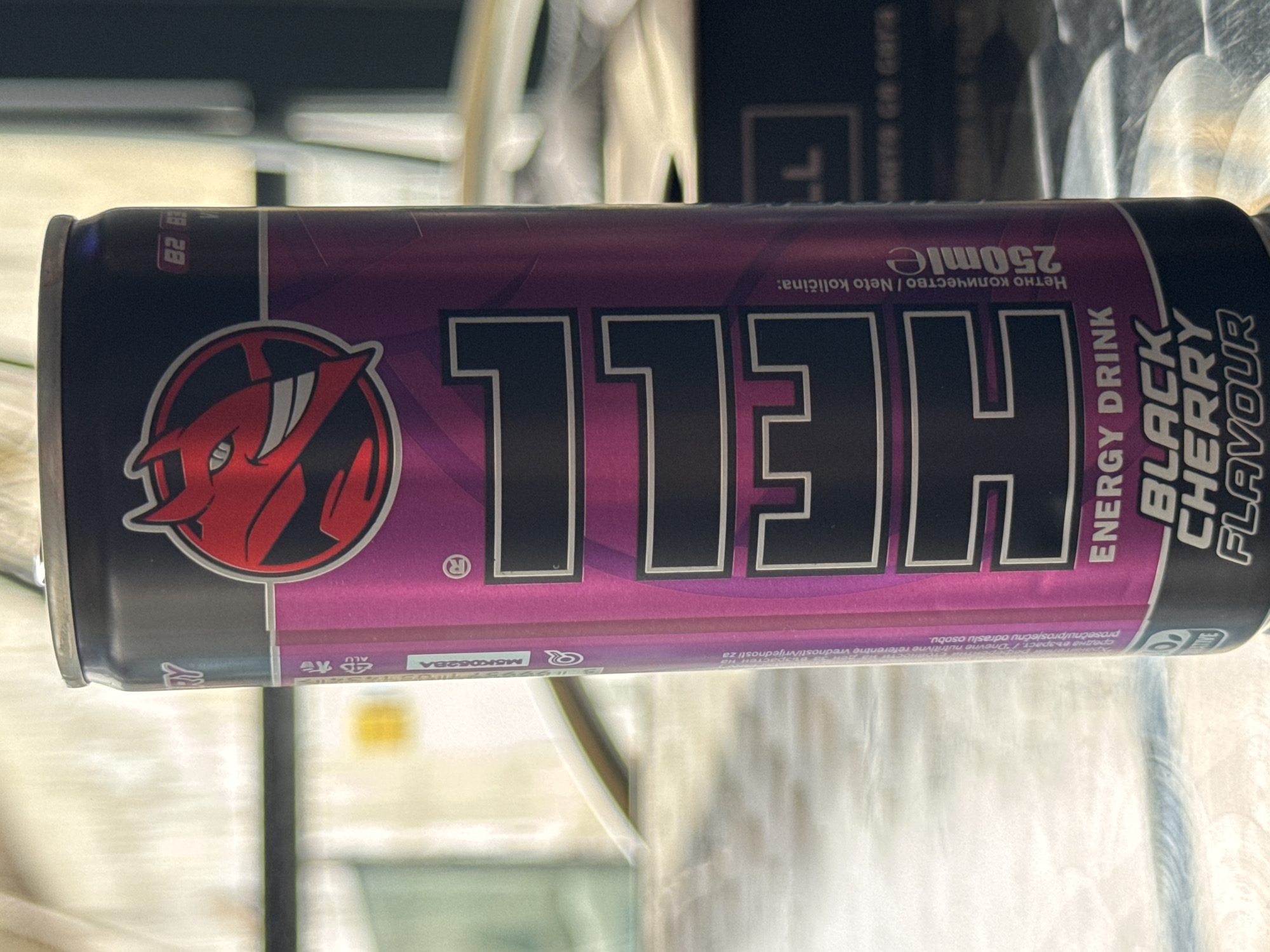 250ml can of "Hell" energy drink in black cherry flavor