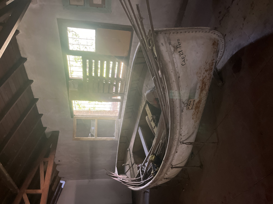 - "The scene depicts an interior view of a rustic structure in Quilmes Oeste, Argentina, featuring a large, white, riveted-hull lifeboat" by FM-r36Gp1, licensed under CC BY 4.0