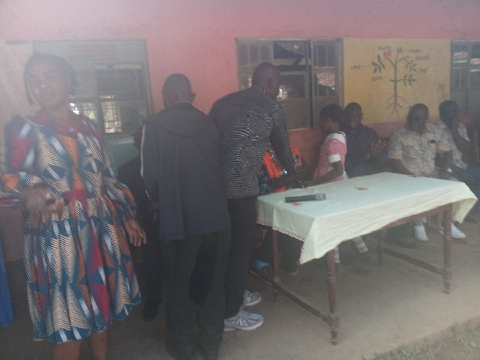 The image depicts an indoor or semi-outdoor gathering in Idakho Central ward, Kenya