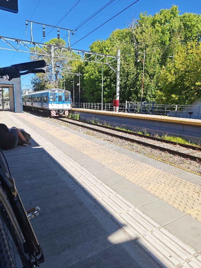 - "The scene depicts a train station platform in Pereyra, Argentina, under a clear blue sky" by FM-nlNdo1, licensed under CC BY 4.0