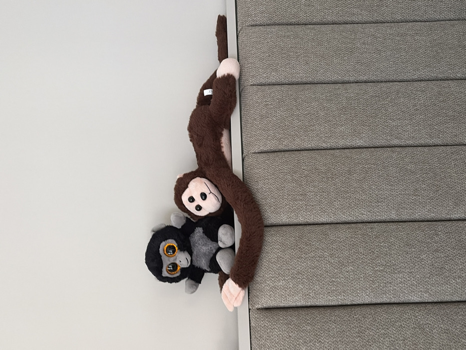 - "The scene depicts two plush monkey toys resting on a light grey upholstered headboard in an interior room in Kableshkovo, Bulgaria" by FM-eNkWy1, licensed under CC BY 4.0