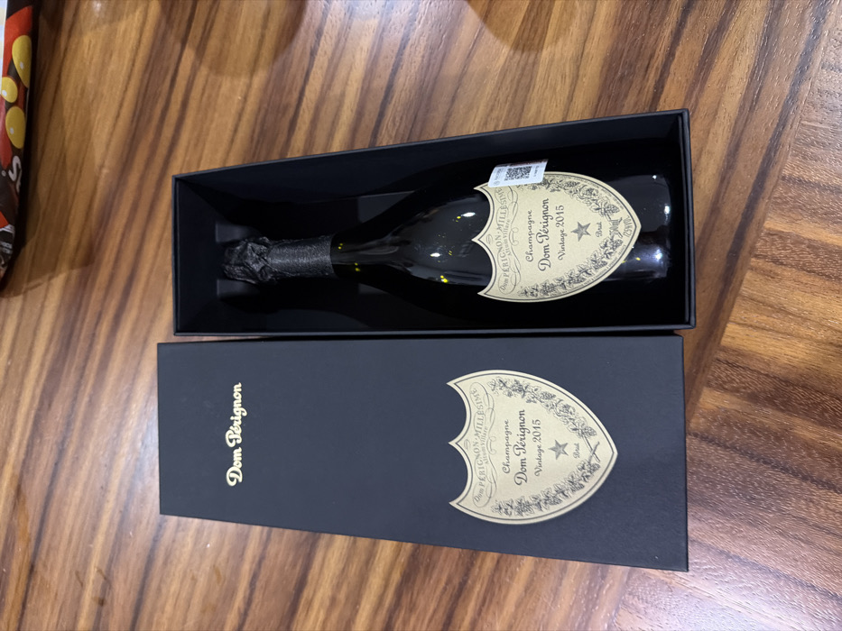 - "A bottle of Dom Pérignon Vintage 2015 champagne rests in its open black box" by FM-CWiHC2, licensed under CC BY 4.0