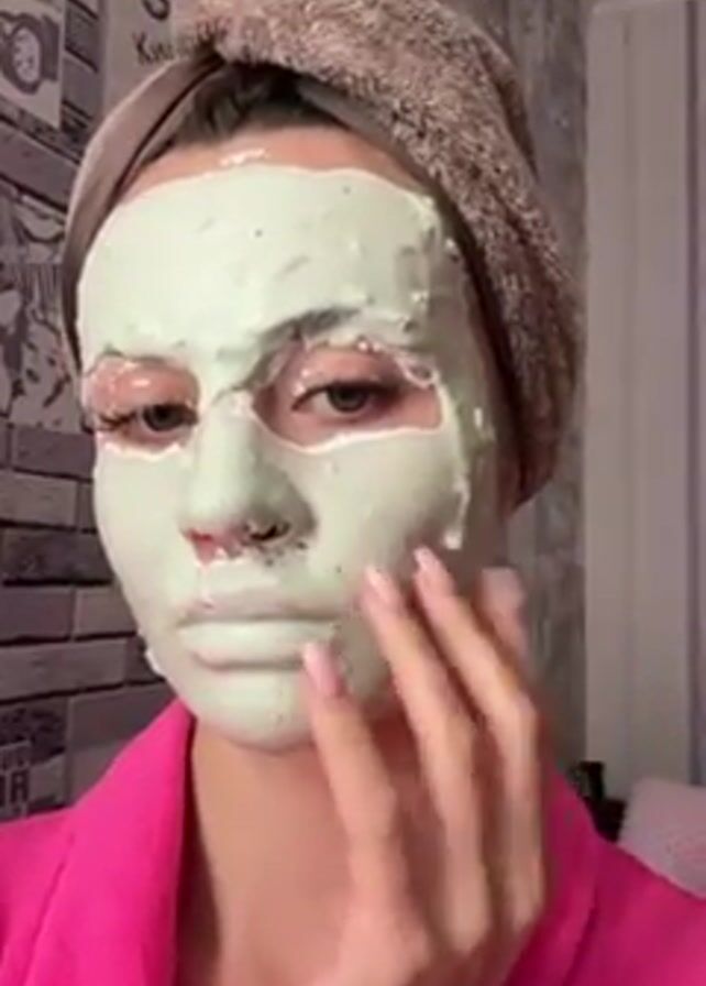 - "woman wearing a pink robe and a towel wrapped around her head, applying a green face mask" by FM-HJIgS2, licensed under CC BY 4.0