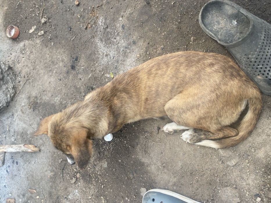 - "The image displays a brindle-patterned dog, primarily light brown with darker stripes, lying on its left side on a dirt surface in Owo, Nigeria" by FM-Ke8RH2, licensed under CC BY 4.0
