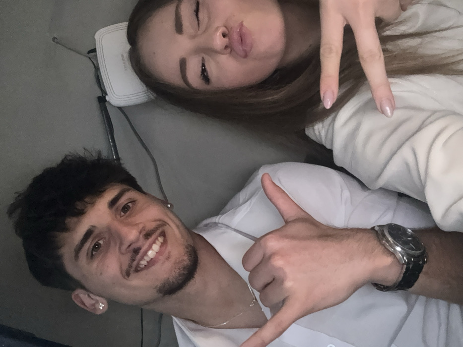 - "two young individuals, a male and a female, captured in a close-up selfie within an enclosed space, possibly a vehicle interior or a small room" by FM-Guwq73, licensed under CC BY 4.0