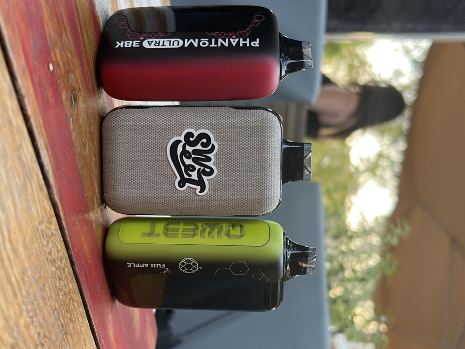 - "Three disposable vape devices are positioned upright on a weathered wooden table with visible wood grain and streaks of red paint" by FM-jZBP83, licensed under CC BY 4.0