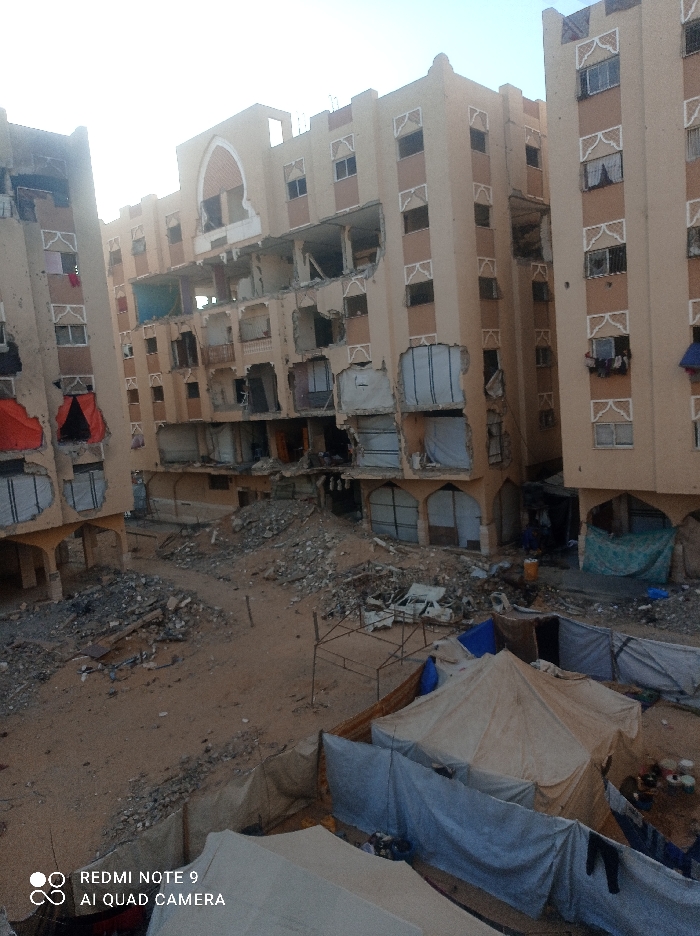 - "The image displays a scene in Khan Yunis, Palestinian Territory, characterized by extensive structural damage and makeshift living arrangements" by FM-iymI62, licensed under CC BY 4.0