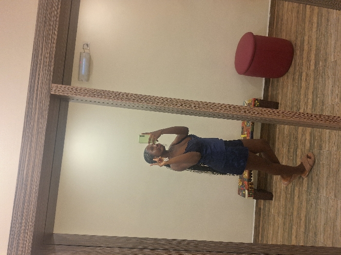 - "A mirror captures a woman in a blue dress, holding a phone, and making a peace sign" by FM-JQPEg2, licensed under CC BY 4.0