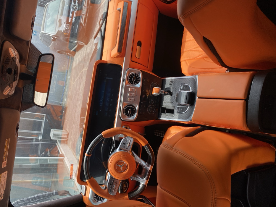 - "The image presents the interior of a customized Mercedes-Benz G-Wagen, viewed from a rear passenger perspective looking towards the front windshield, situated in Igboefon, Nigeria" by FM-ZL5X22, licensed under CC BY 4.0