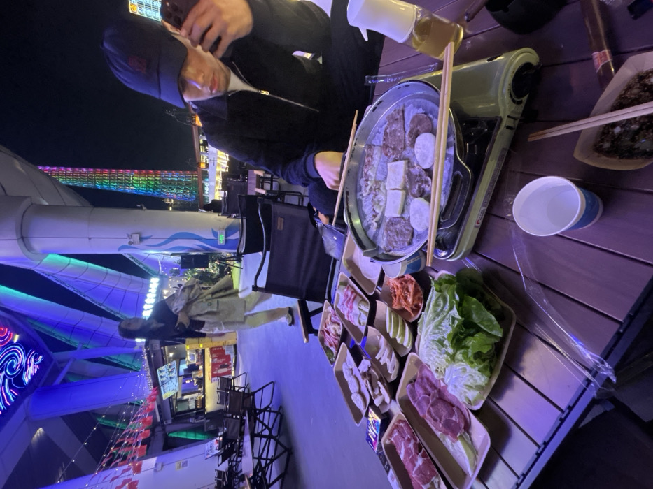 This image depicts a nighttime outdoor dining establishment located in Yuexiu District, China