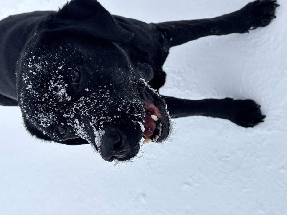 - "The image displays a black canine, consistent with a Labrador Retriever, standing in a snow-covered environment within the city of Chaikovsky, Russia" by FM-azJU53, licensed under CC BY 4.0
