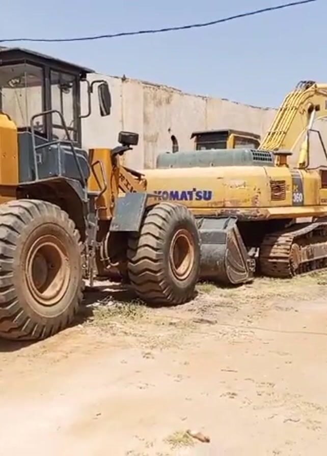 yellow Lonking ZL50HC wheel loader and a yellow Komatsu PC360 excavator parked next to each other in an outdoor area
