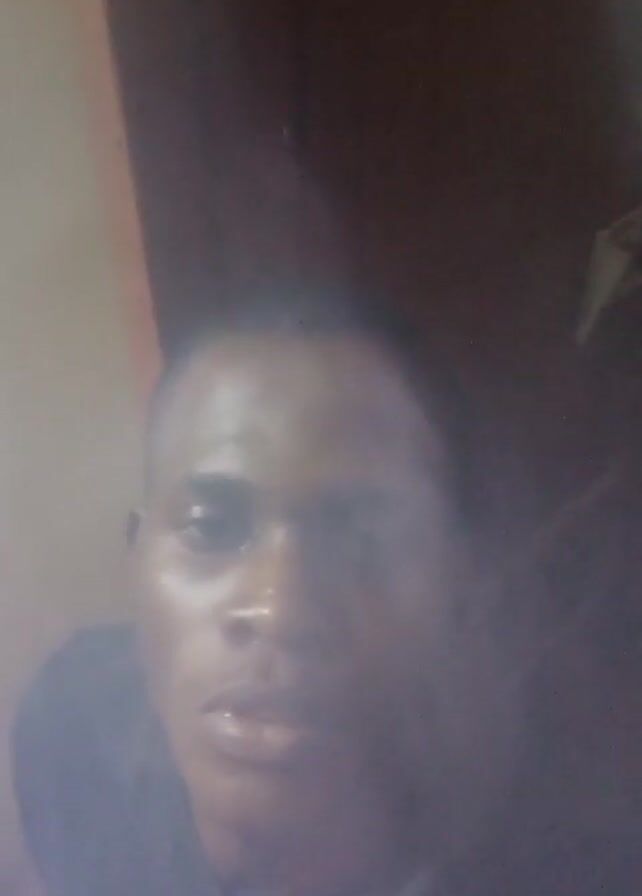 A blurry, close-up shot shows a dark-skinned man indoors. He is wearing a dark shirt. The background is out of focus, appearing to show a wall and a dark-colored object. The man is looking directly at the camera and appears to be speaking. The video is shaky.