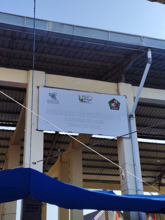 A sign reads "Pasar Rakyat Beureundeun, Kabupaten Pidie, DAKA TP
