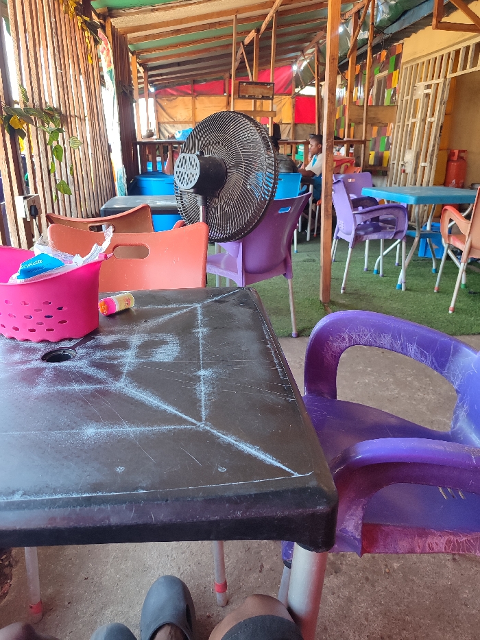 This image depicts a semi-outdoor, casual eatery in Makurdi, Nigeria