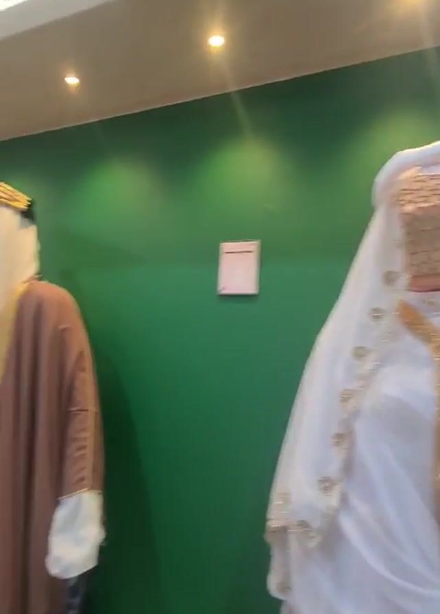 three mannequins dressed in traditional Saudi Arabian clothing