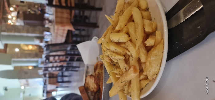 - "A close-up photograph displays a white plate mounded with golden-brown french fries, liberally seasoned with dark herbs and salt, positioned on a white tabletop" by FM-PD02y1, licensed under CC BY 4.0