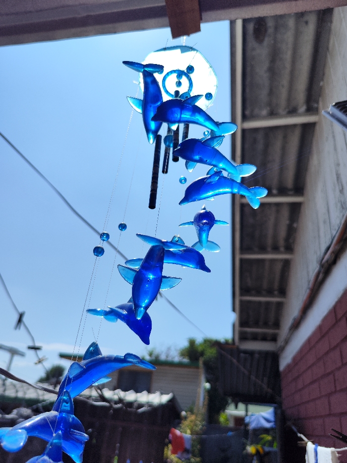 - "A dolphin wind chime hangs outside" by FM-XLOz83, licensed under CC BY 4.0