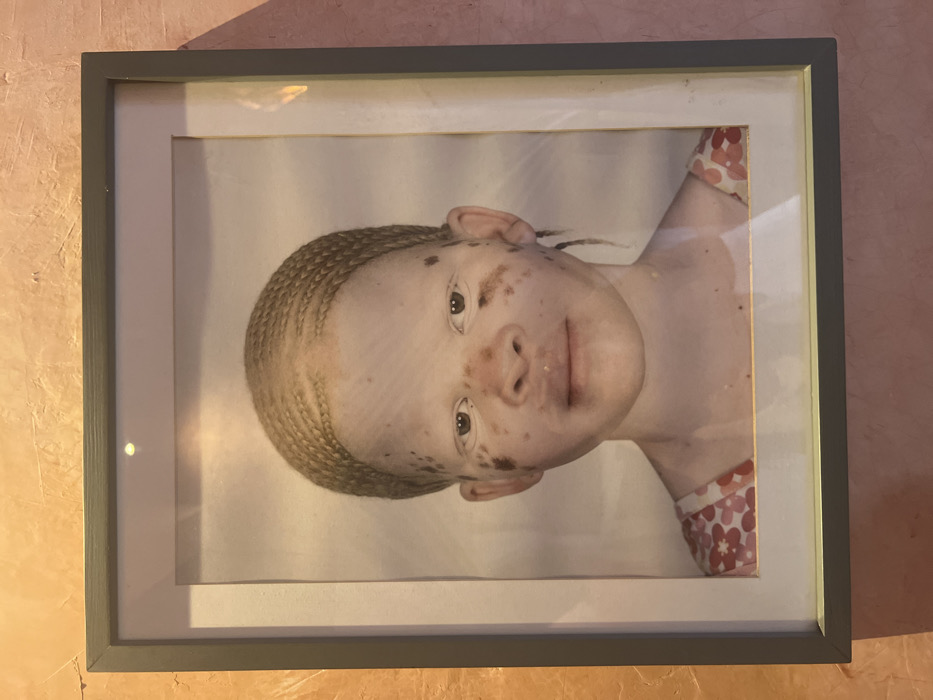 - "A framed portrait of a young person with albinism hangs on a wall" by FM-4CqV83, licensed under CC BY 4.0