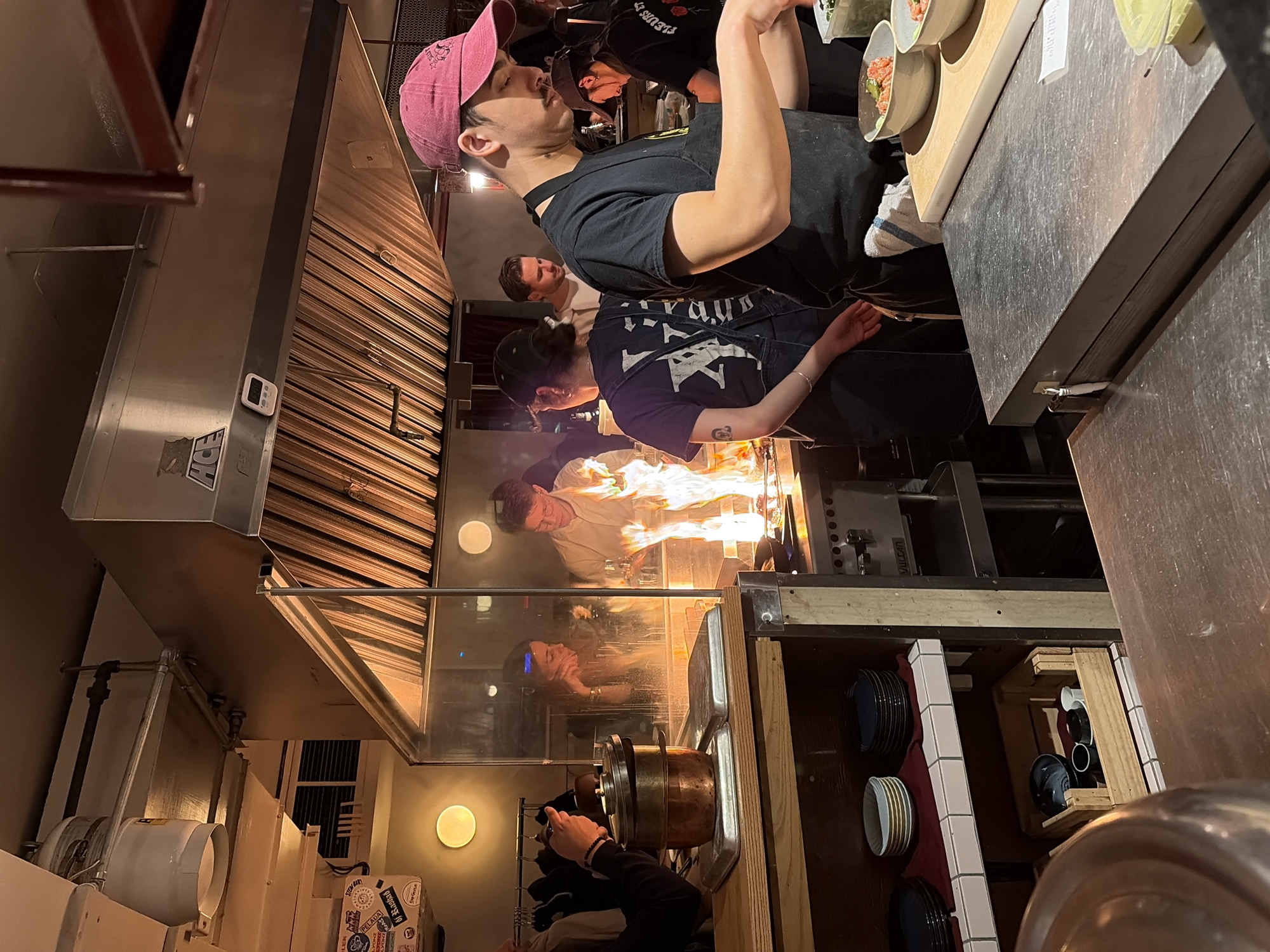 - "The image captures an active, open-concept professional kitchen, likely located in Montreal, Canada, as indicated by visible "ST-DENIS" and "Pizzeria Adamo" stickers on a wall to the far left" by FM-N0A8i2, licensed under CC BY 4.0