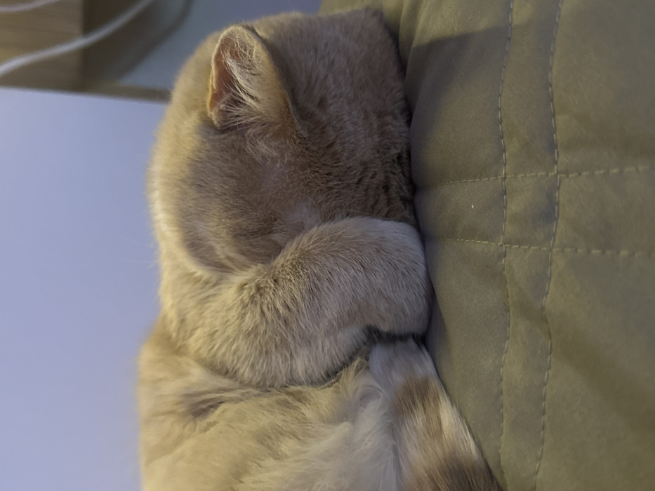 - "A domestic cat with light orange-buff fur is depicted sleeping or resting indoors, in what is stated as Nekrasovskiy, Russia; no visual markers within the image confirm this geographical location" by FM-2t2Dl2, licensed under CC BY 4.0