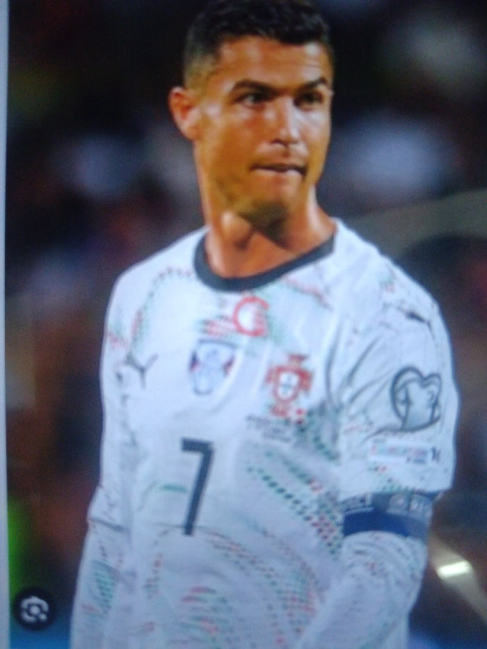 - "Cristiano Ronaldo, wearing a long-sleeved white Portugal soccer jersey with the number 7, is captured from the waist up" by FM-UIvPu1, licensed under CC BY 4.0