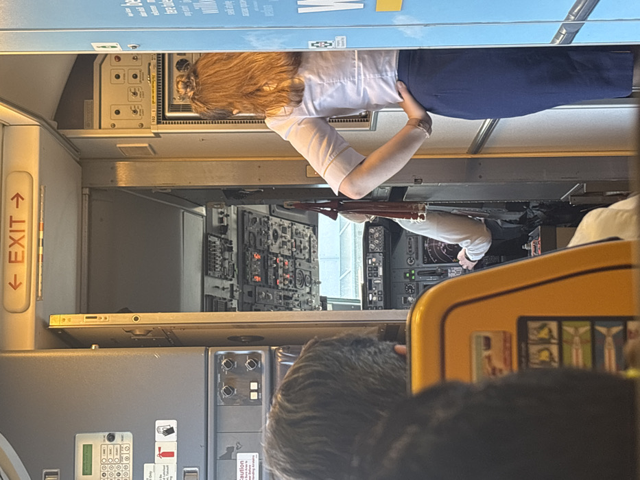 - "The image displays the interior of an aircraft, positioned at London Stansted Airport in Uttlesford, United Kingdom" by FM-Wt2QG3, licensed under CC BY 4.0