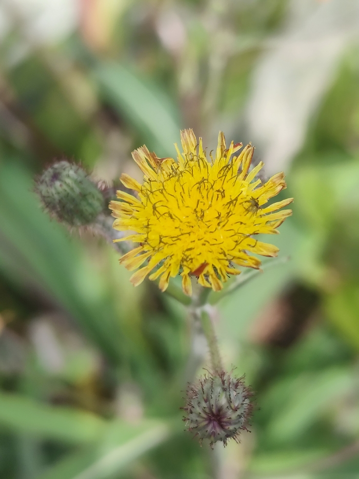 - "The image displays a close-up, top-down perspective of a single blooming yellow composite flower, consistent with a species from the Asteraceae family such as *Sonchus* (sow thistle) or *Taraxacum* (dandelion), located in an outdoor natural setting within Palangka Raya, Indonesia" by FM-cWnto2, licensed under CC BY 4.0