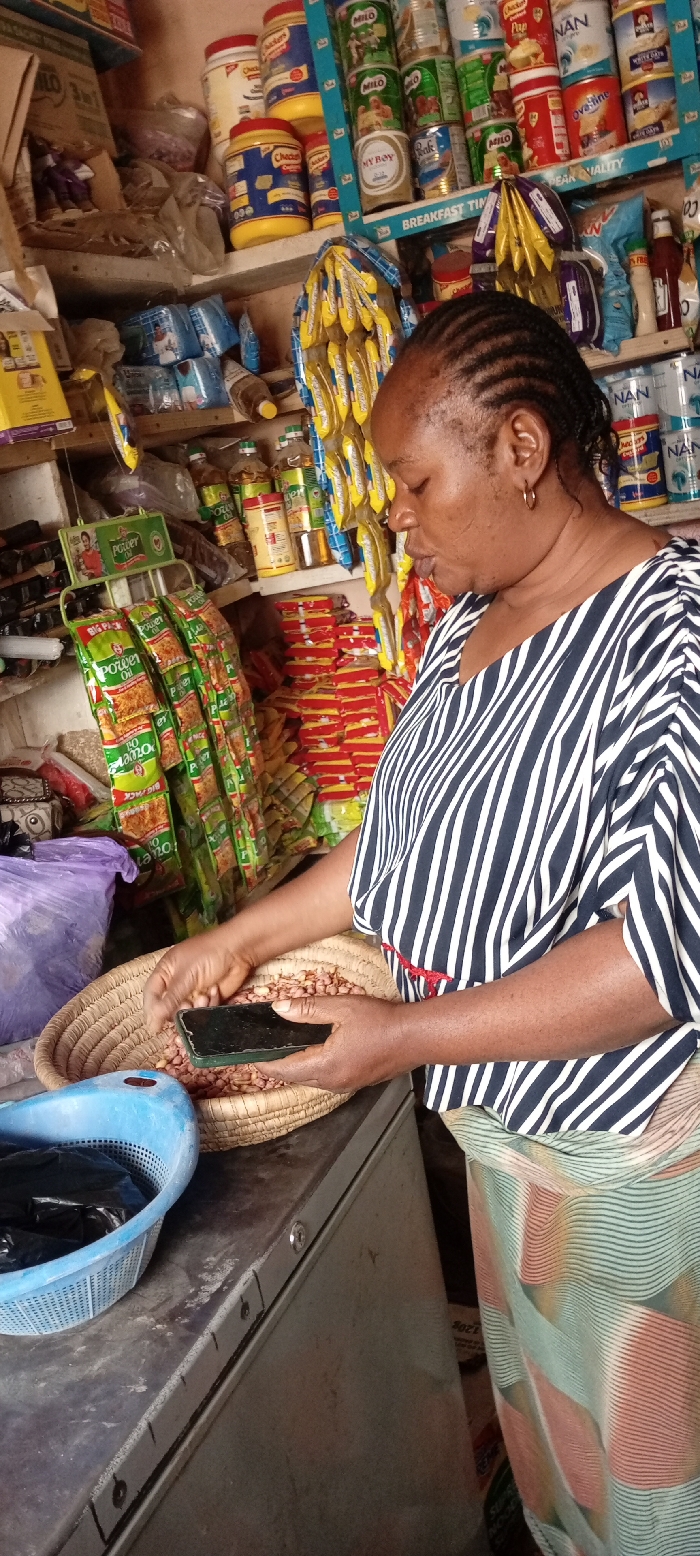This image depicts the interior of a small provision store in Gayawa, Nigeria