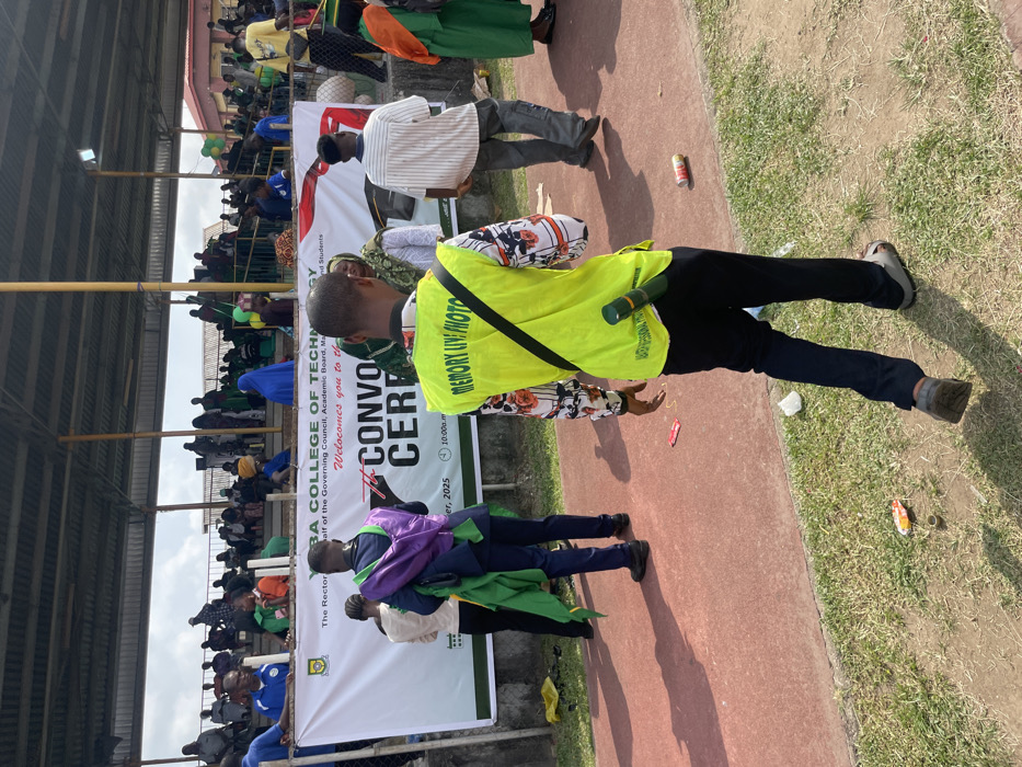 An outdoor scene captured during daylight depicts a convocation ceremony at Yaba College of Technology in Ebute-Metta, Lagos, Nigeria