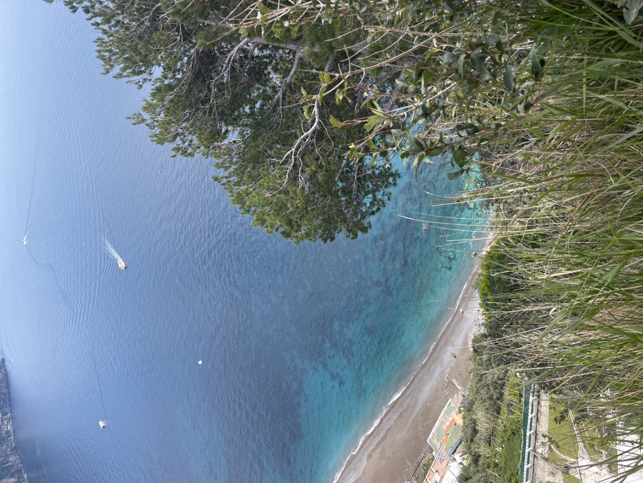- "A high-angle, downward-looking view captures Fornillo Beach and a segment of the Tyrrhenian Sea from a cliffside vantage point in Positano, Italy" by FM-X3uic2, licensed under CC BY 4.0