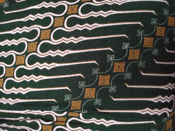 - "The image displays a vertical close-up of a dark green textile, featuring a repeating geometric pattern" by FM-ZO9In1, licensed under CC BY 4.0