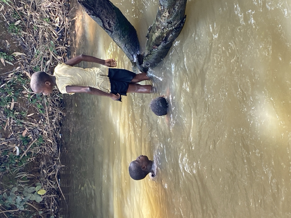 - "Three dark-skinned children are present in a murky, brownish-yellow body of water, likely a river or stream, in Ufueseni, Nigeria" by FM-6XMFv1, licensed under CC BY 4.0