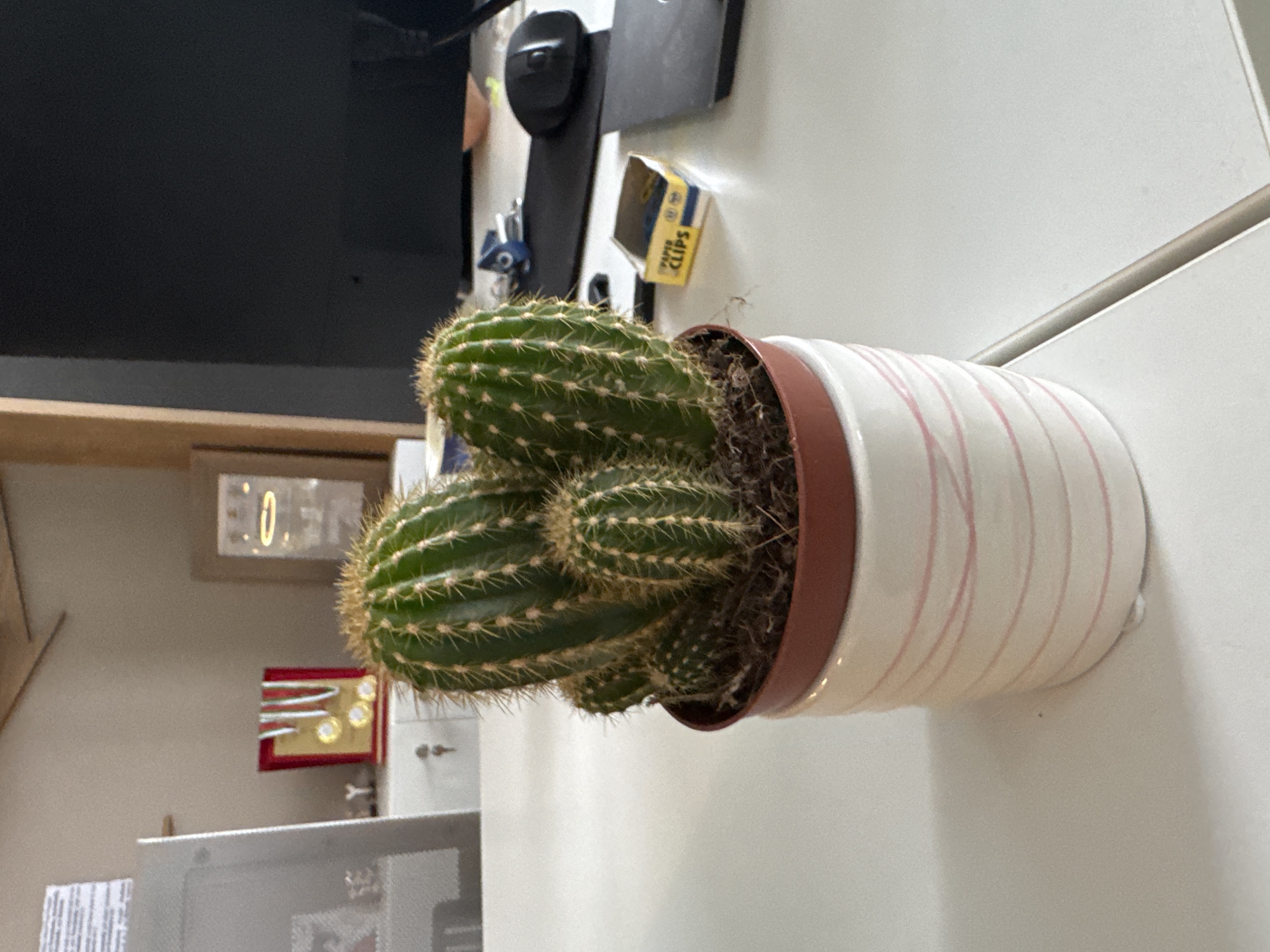 - "A cactus in a white pot with pink stripes sits on a white surface" by FM-rJ28s2, licensed under CC BY 4.0