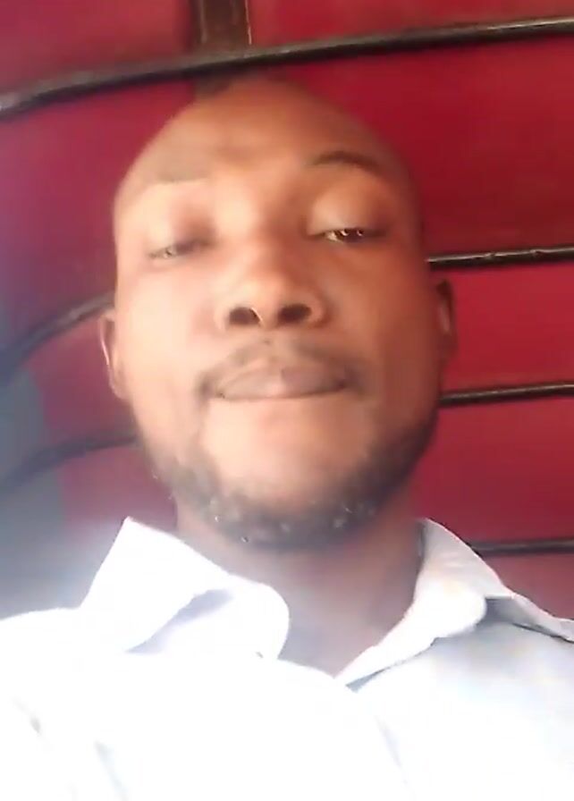 A person with a beard is recording a selfie video while riding in a vehicle with a red roof